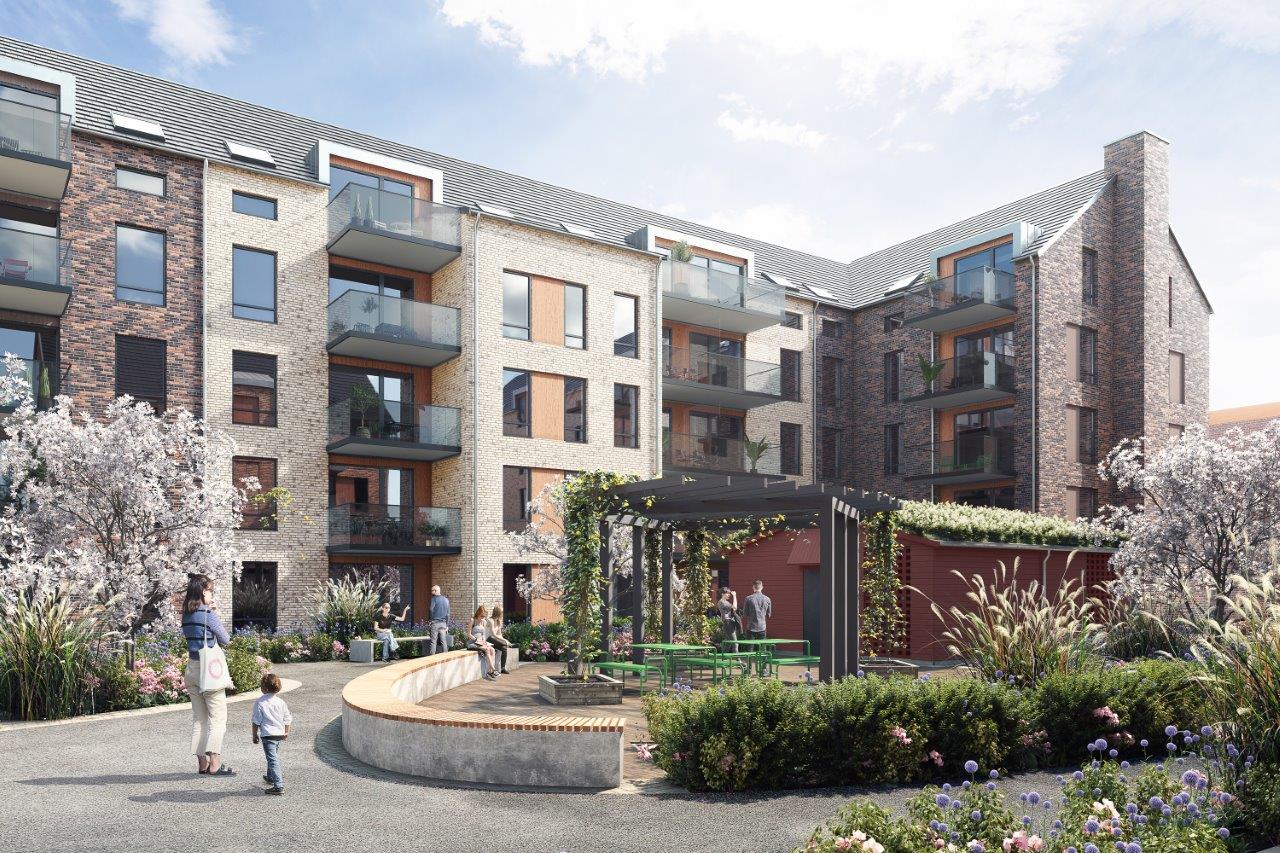– Energieffektivitet är ett kriterium och vi har tagit det ett steg längre med solceller på taket. Vi har dessutom förberett för ellagring i källaren. Vi börjar med en batterilagring i mindre skala och väntar in bättre teknik. Då är vi förberedda så att vi kan bygga ut den kapaciteten, berättar projektsamordnare Thomas Gustafsson på Tage och Söner. Husen är ritade av Liljewalls Arkitekter och har en fin och levande småstadsarkitektur. Lägenheterna är från ettor upp till några femrummare. Materialvalen håller hög standard med mycket naturmaterial, som trägolv och fönsterbänkar i marmor. Balkongerna är stora och sol och ljus flödar genom bostäderna. De större lägenheterna har vardagsrum och kök som skapar genomsikt mellan lägenheternas gårdssida och gatusida, medan andra lägenheter har vardagsrum och kök i hörnläge. De flesta av de minsta lägenheterna vänder sig mot gården. Fasaderna domineras av tegel i vackra skiftningar som kombineras med trä för att ge variation och uttryck. Vindsvåningarnas takkupor bryter av sadeltaken och skapar trevlig variation.