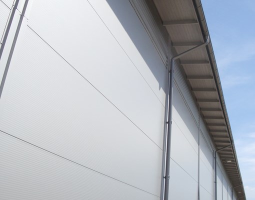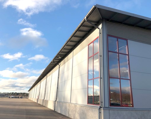Den nya lagerlokalen är 1.5 m högre än kringliggande produktionsbyggnader och har en stomme av stål, fribärande takplåt och fasader av sandwichelement i stål. Sockelelement av betong skyddar byggnaden mot påkörning av trucktrafik. Fläkt och teknikrum är placerat på ett entresol i lagerdelen. Utvändigt anordnas en ny plats för lastning och lossning under skärmtak för ett bra godsflöde. Omgivande gårdsplan anpassas i nivå och asfalteras.